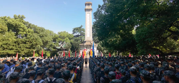 早上6时30分□□,800名重生代外从学校开赴□,正在教员和教官们的率领下□,冒着炎炎骄阳徒步15公里来到衡阳抗战缅想碑前,怀想正在抗战中勇敢亏损的革命义士□□,练习先烈们甘于亏损、无私贡献的爱邦精神。