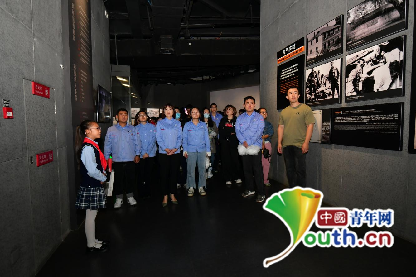 红围巾解说员引颈现场青少年走进侵华日军第七三一部队罪证摆设馆瞻仰。黑龙江团省委供图